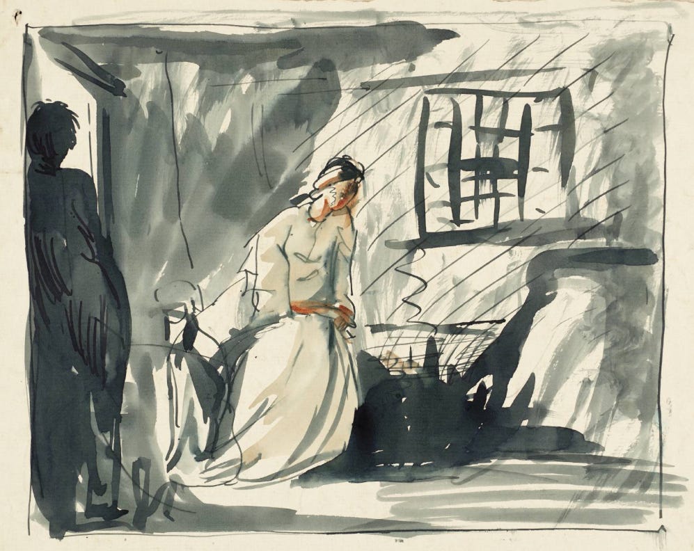 This very subject is why I once confessed I could write about every single word in this novel. And, this is the reason why I cannot seem to limit the length of these summary essays each week! Emily Brontë created a meticulously layered narrative— characters’ interactions with walls, fences, gates, doors, and windows are filled with symbolism, I am obsessed with her ability to weave meaning into banal architectural elements and utilitarian items.