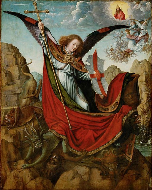 Saint Michael is one of the principal angelic warriors, protector against the dark of the night and the Archangel who fought against Satan and his evil angels.
